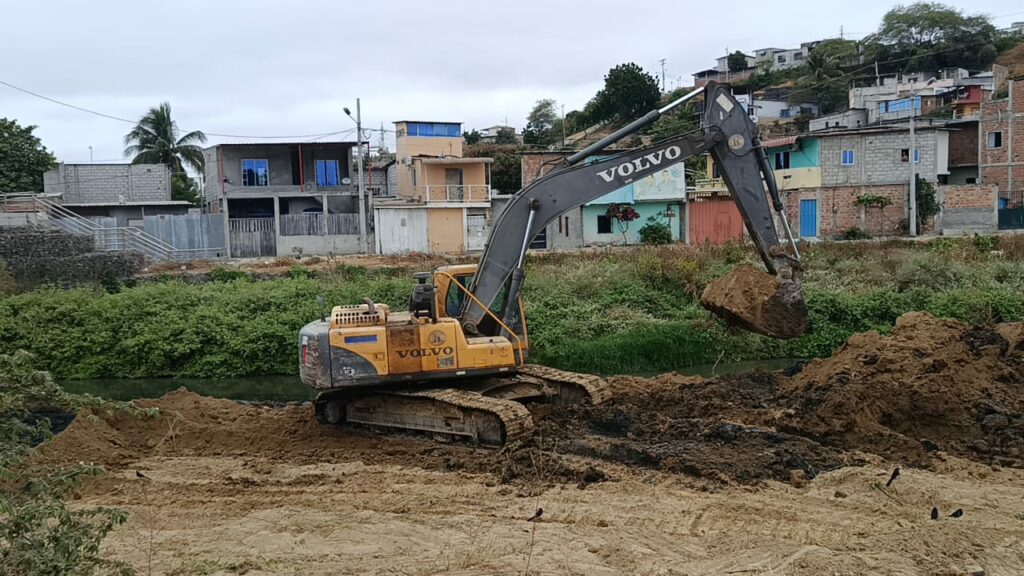 Limpieza del río Manta avanza con maquinaria en el barrio 5 de Junio.