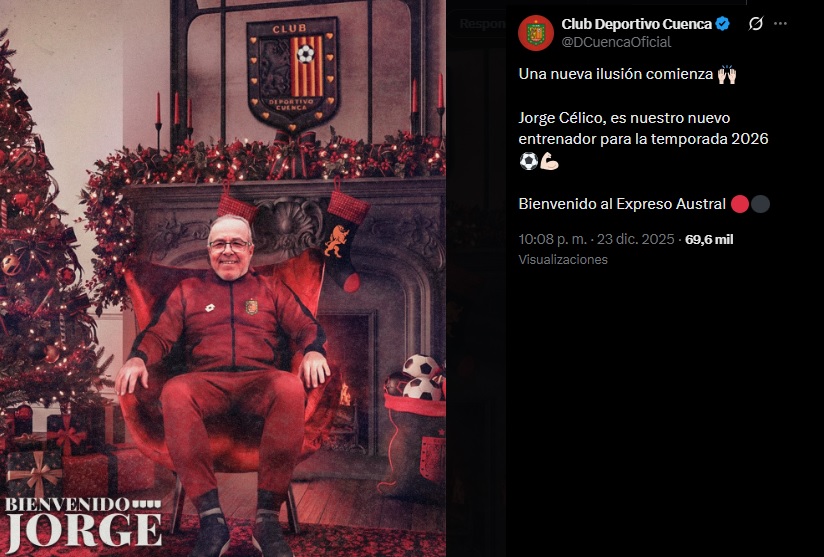 “Una nueva ilusión comienza. Jorge Célico, es nuestro nuevo entrenador para la temporada 2026. Bienvenido al Expreso Austral”, fue el mensaje del equipo ecuatoriano.