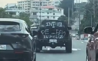 En Guayaquil, entre bocinas y semáforos en rojo, un vehículo 4×4 negro, con placas del Guayas y varios años de uso, se convirtió en el espectáculo inesperado de la ciudad. No por su motor ni por su marca, sino por los mensajes escritos en toda su carrocería con letras blancas, gruesas y de imprenta grande: ¿venganza por una traición?.