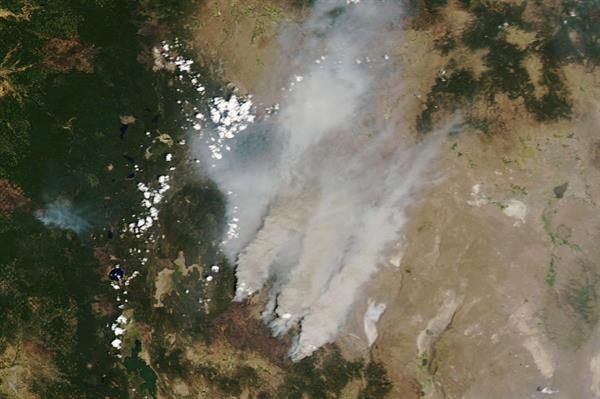 Las imágenes tomadas por los satélites este martes mostraban una gigantesca columna de humo que, desde el sureste del Oregón, se desplazaba hacia el norte hasta alcanzar la frontera con Canadá, a unos 1.000 kilómetros.