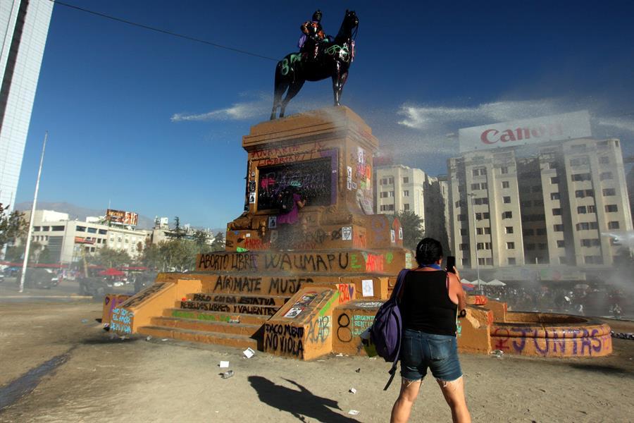 El monumento a Baquedano, de bronce y más de 5 metros, ha sido centro de ataques desde que estallaron las revueltas contra la desigualdad en octubre de 2019, las más graves desde el fin de la dictadura de Augusto Pinochet (1973-1990), con una veintena de muertos y miles de heridos, y el pasado viernes un grupo de manifestantes le prendió fuego, un hecho que fue duramente criticado por el Gobierno y el Ejército.