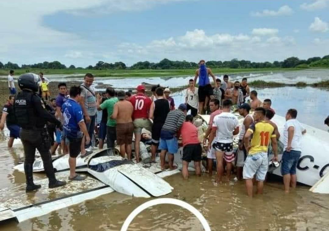 La Dirección de Aviación Civil adjuntó una fotografía en la que se aprecian los restos de la avioneta boca abajo sobre una superficie de agua y personal de la Policía y Bomberos durante las labores de reconocimiento, así como decenas de personas sobre la cabina y alas del aparato. EFE